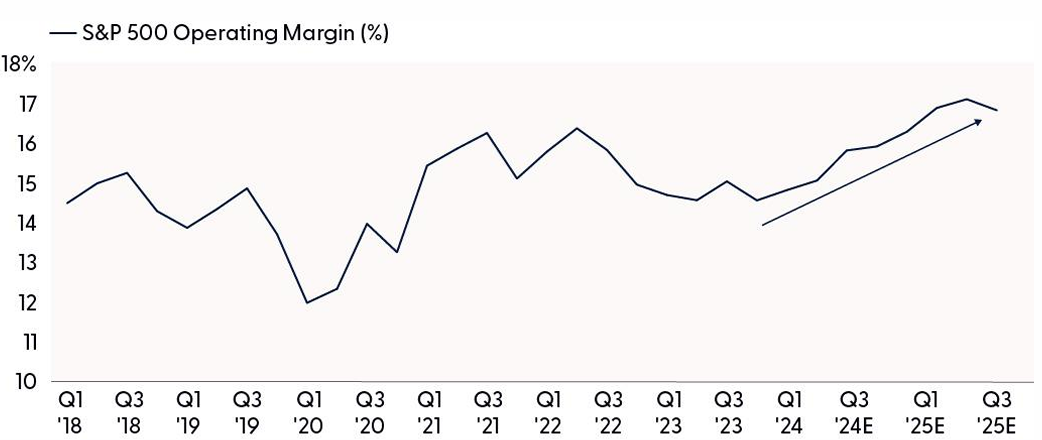 • Investment in AI remains strong. While scrutiny on returns on those investments will increase over time, that investment is likely to boost earnings through 2025.