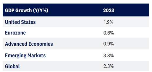 *Our year-end 2023 forecast for the U.S. 10-year Treasury yield has been updated and is now 4.25% to 4.75%. The Fed’s higher for longer narrative and the poor supply/demand technicals for Treasury securities will likely keep interest rates at these elevated levels until the economic data weakens and/or inflation falls back in line with the Fed’s longer term 2% target.