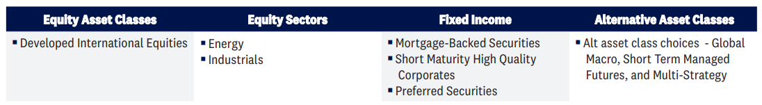 For investors who have their own benchmarks, we would recommend emphasizing underweights or overweights relative to the individual benchmark at the most similar overall risk level.
