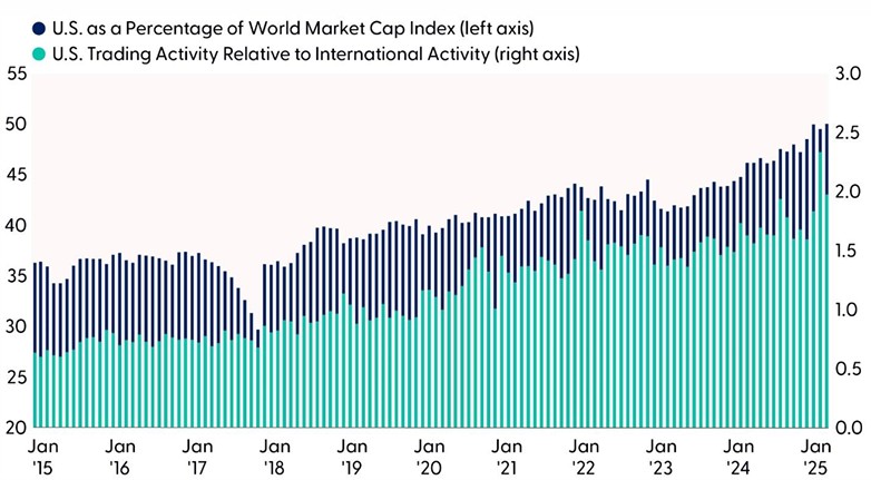 U.S. exceptionalism remains for several fundamental reasons. The dollar maintains its status as the world’s reserve currency. Despite attempts by rivals and complaints from allies, the dollar remains dominant, used in nearly half of global transactions. The role of domestic markets also helps define exceptionalism. As of early 2025, the total market capitalization of the U.S. stock market was approximately $62.2 trillion. The global stock market’s total market capitalization was around $116 trillion, which means the U.S. market cap represents over half of the world’s total market capitalization.